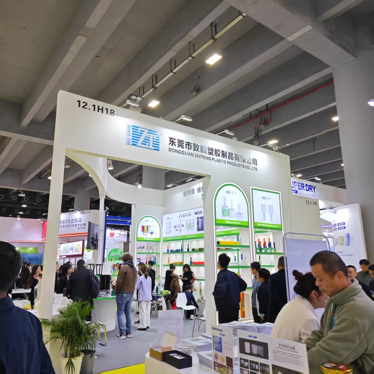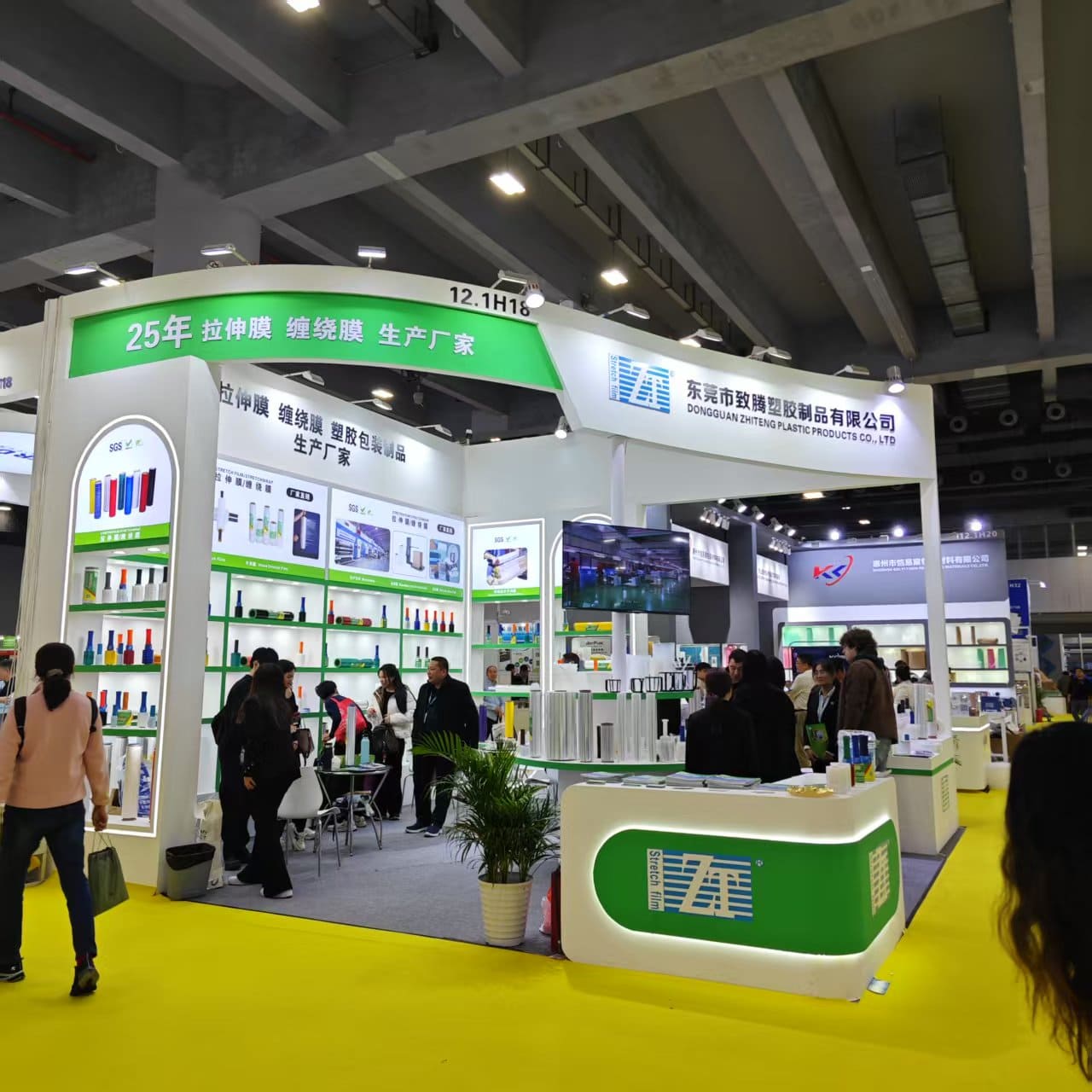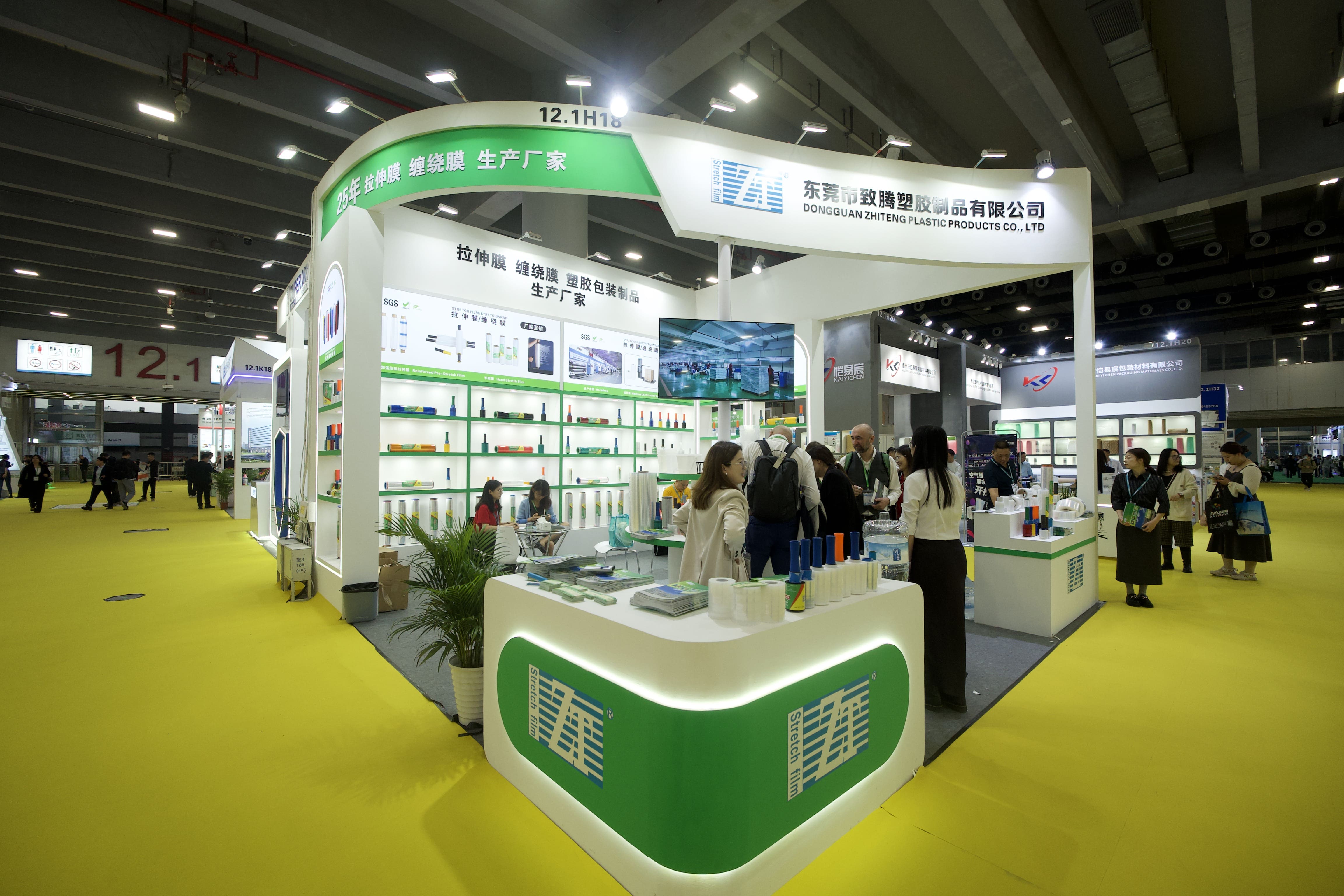 On March 4, 2025, the 2025 China (Guangzhou) International Packaging Products Exhibition opened grandly at the Canton Fair Complex. Dongguan Zhiteng Plastic Product Co., Ltd., a leading enterprise in China’s packaging industry (Booth No. 12.1H18), showcased its star product—high-performance stretch film—at the event. On the opening day, the Zhiteng booth attracted over 100 professional buyers from home and abroad, creating a bustling atmosphere.